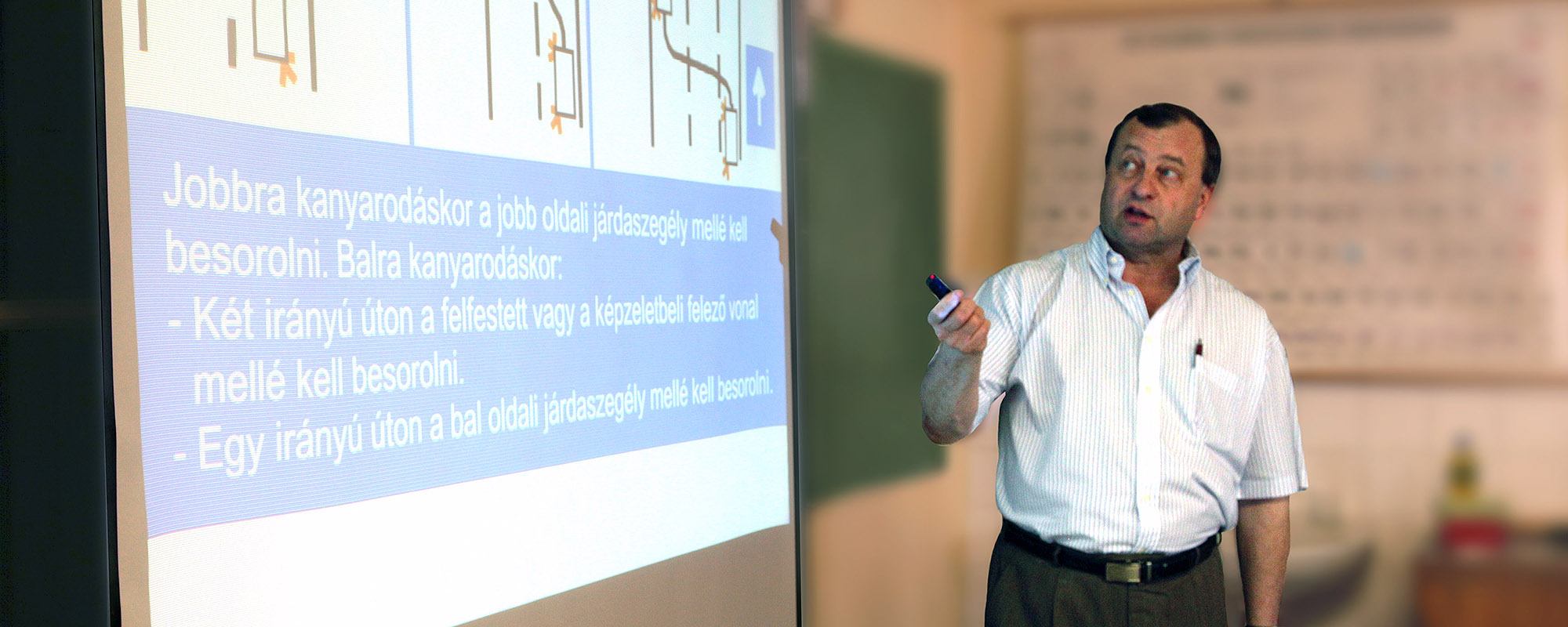 Az elméleti órákat az iskolavezető Palotai István tartja, akinek több mint 20 éves tapasztalata, a szakterületén mélyreható tudása, és naprakész információi révén diákjai minőségi oktatásban részesülnek. Az előadások tágas teremben, kivetítő segítségével folynak, ahol 28 óra alatt többek közt KRESZ-el, járművezetési ismeretekkel, műszaki ismeretekkel foglalkoznak.